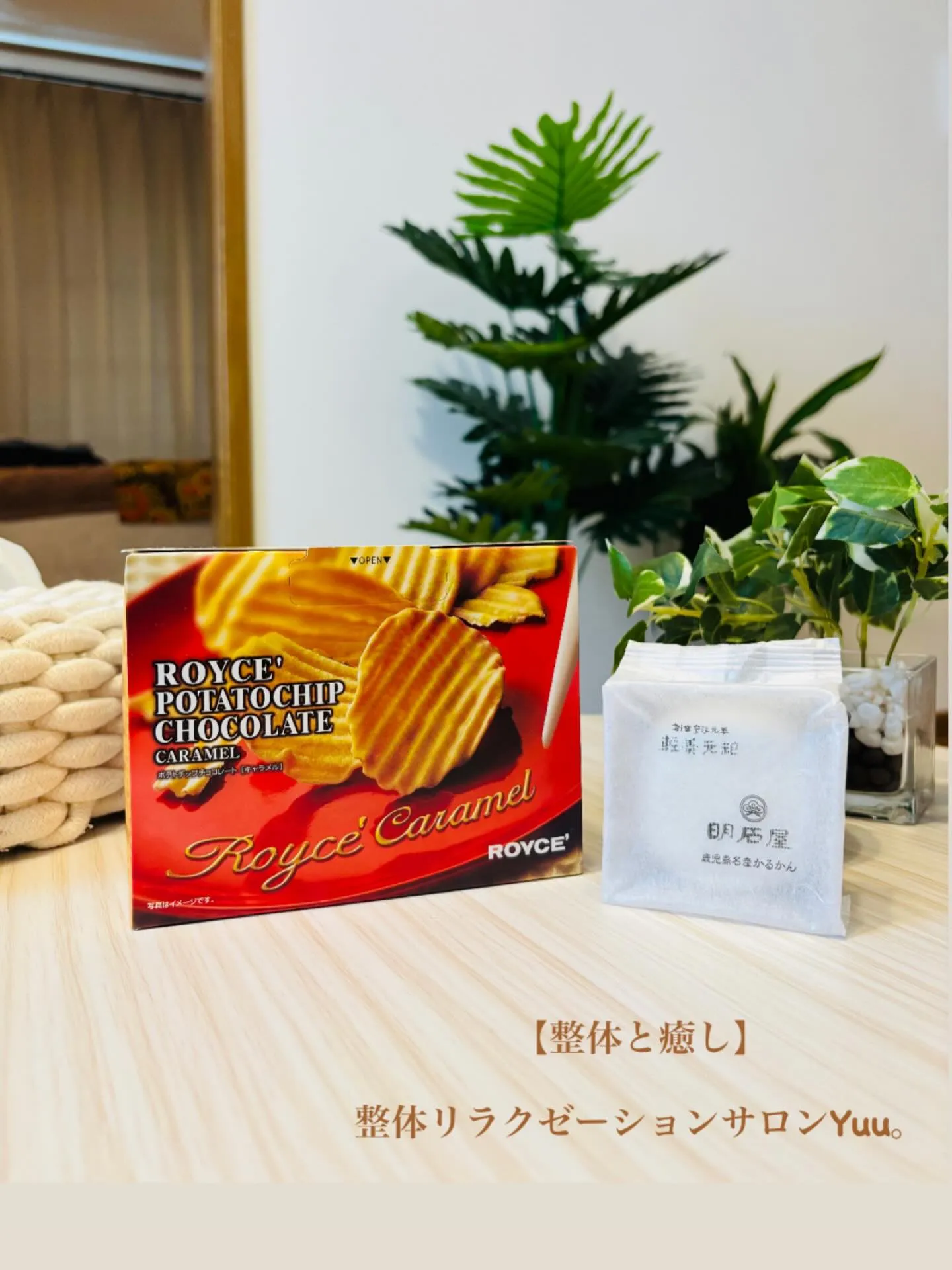 #和歌山県岩出市 #和歌山県整体リラクゼーションサロン #岩出市整体リラクゼーションサロン #和歌山県リラクゼーションサロン #岩出市リラクゼーションサロン #整体ボディケア #整体 #骨盤矯正 #姿勢改善 #産後骨盤ケア #マタニティボディケア #マタニティマッサージ #もみほぐし #オイルリンパマッサージ #ドライヘッドスパ #足裏フットオイルマッサージ #小顔矯正 #癒し効果 #自然治癒力向上 #リラックス効果 #リラックス効果 #健康ケア #肩こり #腰痛 #身体のメンテナンス #お一人ひとりに寄り添って #お客様からのいただきもの #お心遣いに感謝です #ROYCE #ロイズポテトチップチョコレート #かるかん饅頭