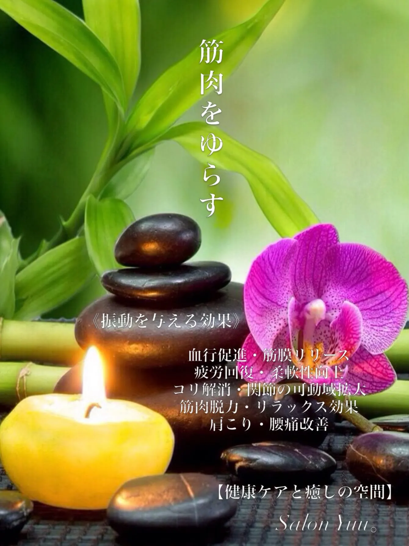 筋肉をゆらす《振動を与える》効果は、血行促進による疲労物質の排出、硬化した筋膜のリリース、筋肉の柔軟性の向上とリラックス効果が得られます.*・゚