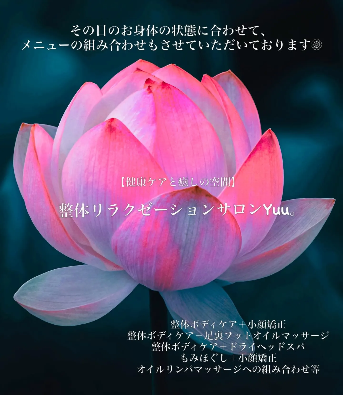 セットコース整体ボディケア100分+小顔矯正60分は、お得な人気セットコースとなっております🌼*・