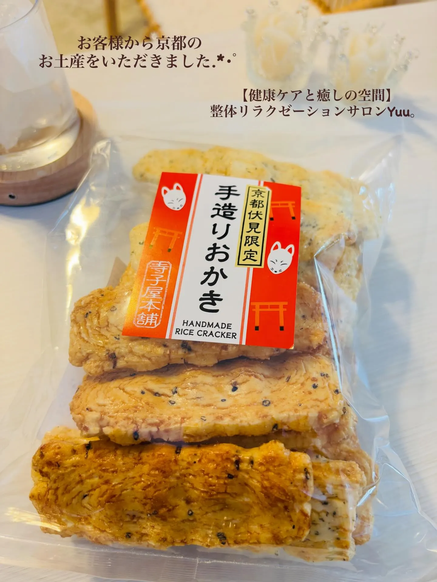 お客様から京都伏見限定の手造りおかきのお土産をいただきました♡✨